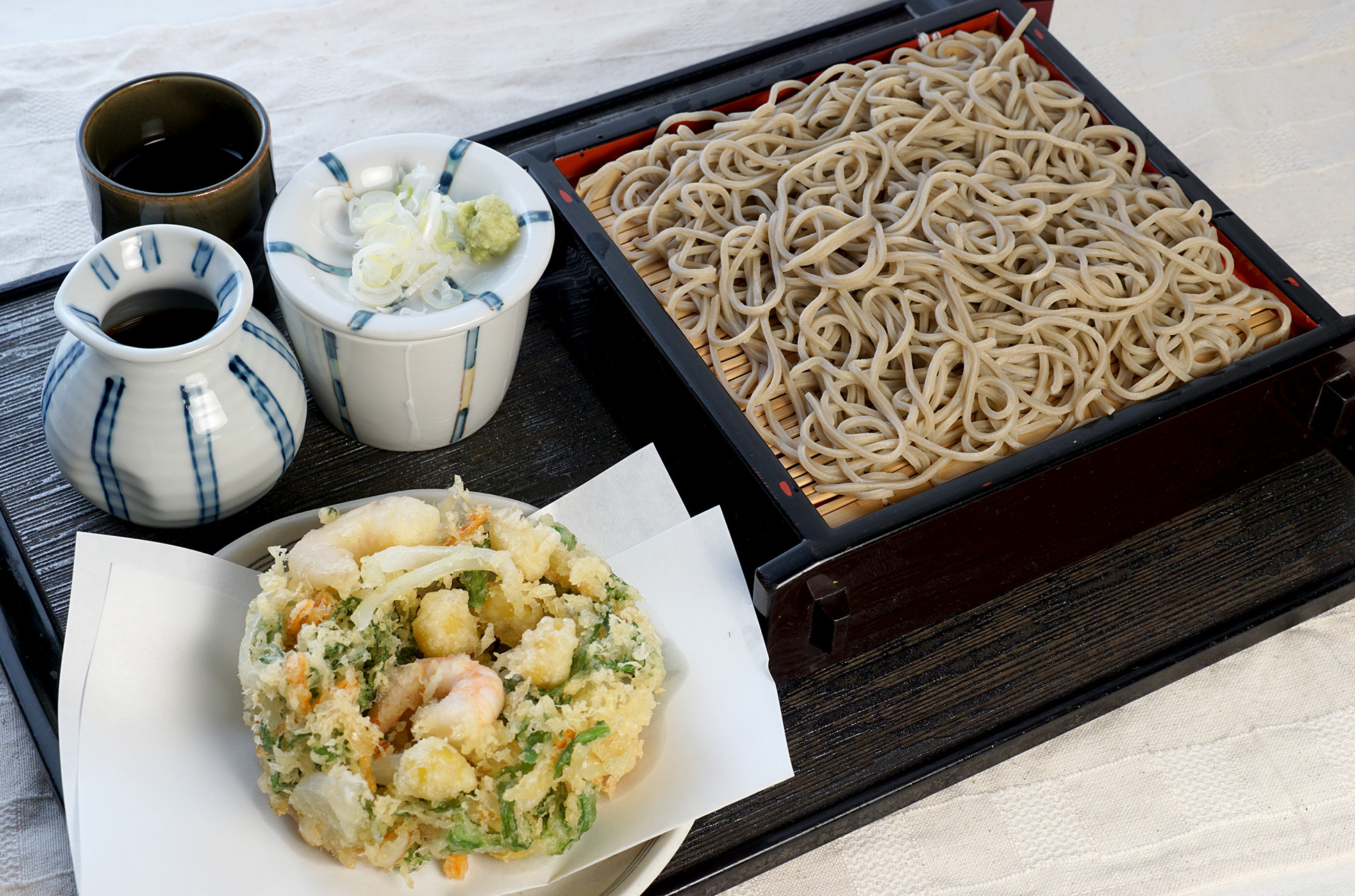 ●夏野菜と小えびのかき揚げざる・・・1,060円(税込1,166円)