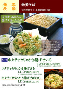 セリの香りとホタテとエビの食感が贅沢なかき揚げをお楽しみください!